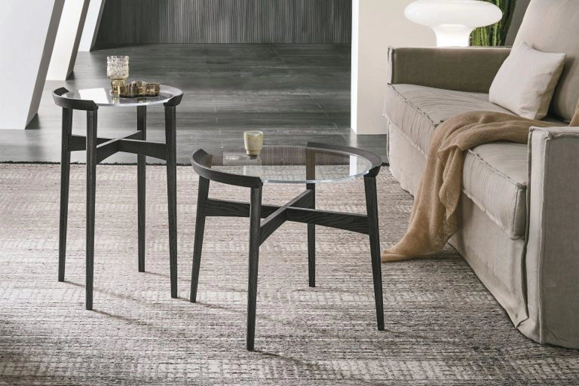Complementi e tavolini personalizzano l'arredo di casa, riempiendo lo spazio in maniera utile e rendendolo accogliente e di grande valore estetico. Tavolino rotondo con top in vetroi Bloom di Tomasella in vetro: aggiungerà personalità e charme a un locale ammobiliato con mobili e complementi dai richiami moderni. Le composizioni di charme del marchio Tomasella valorizzano l'habitat con i loro colori e gusto, ricreando particolari atmosfere arredative. Nel nostro showroom potrai vedere dal vivo l'eccellenza dei modelli di tavolini moderni in vetro della marca, proprio come questa soluzione in foto.