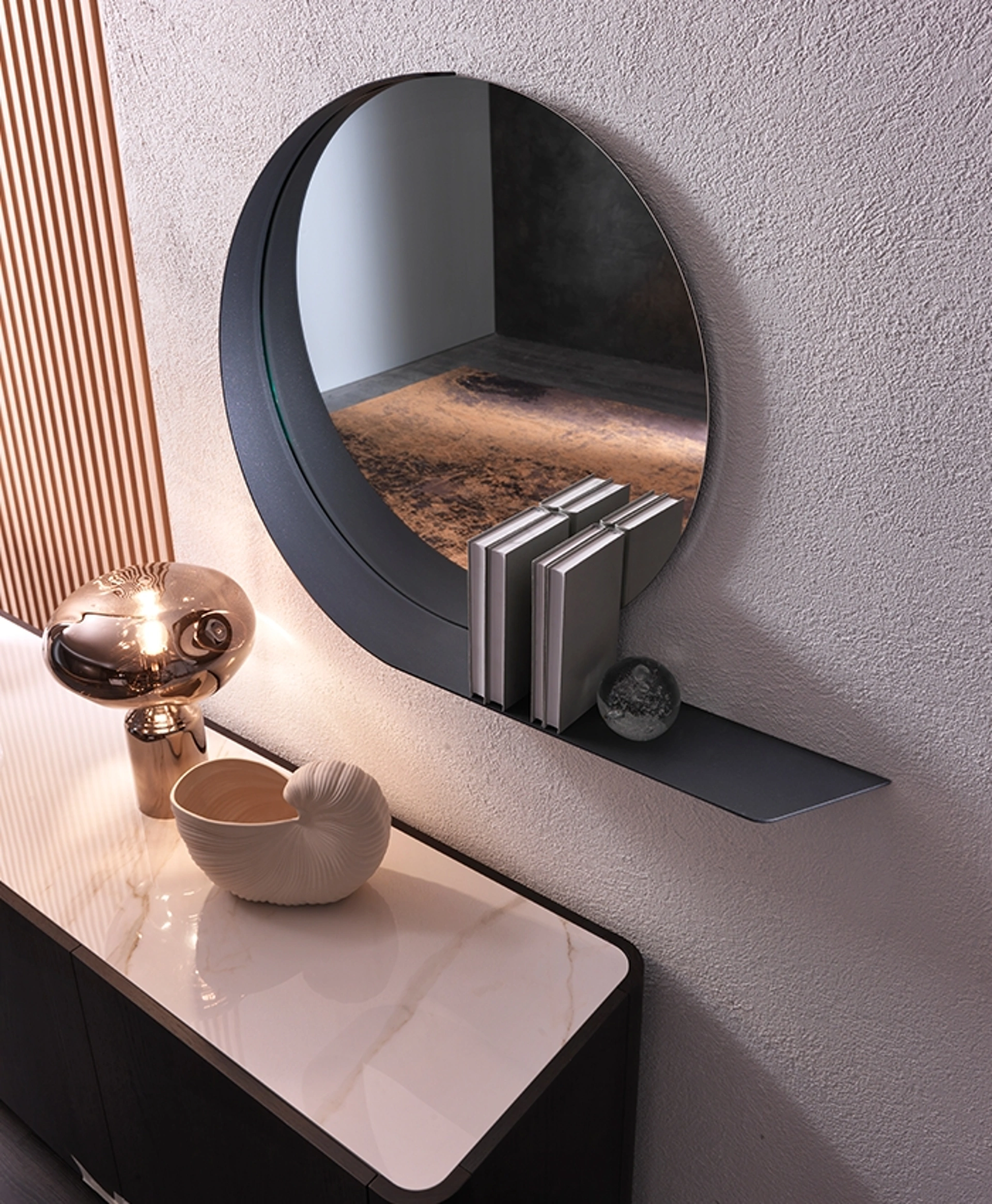 Complementi e specchi completano l'arredo di casa, occupando lo spazio in modo utile e rendendolo assai funzionale e bello a vedersi. Particolarmente versatili e multifunzionali, i Complementi moderni in metallo svolgono funzioni diverse: ultimano le doti pratiche e l'estetica dell'ambiente. Specchio Madame con mensola di Riflessi in metallo: conferirà personalità e charme a un locale ammobiliato con mobili e oggetti accessori dai richiami moderni. Le composizioni di grande valore estetico del marchio Riflessi arredano l'habitat con colore e gusto, ricreando particolari atmosfere arredative.