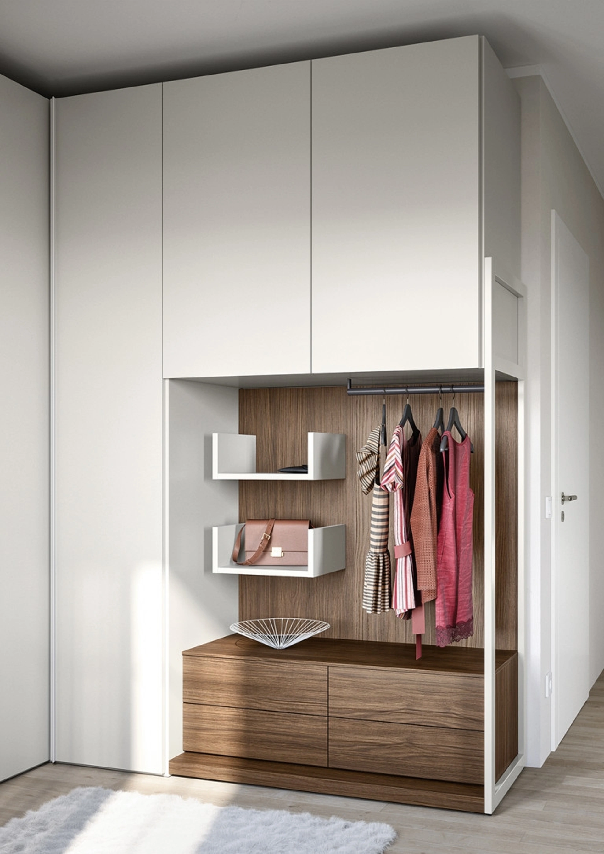 Una ampia varietà di arredi in melaminico come quest'armadiatura con ante battenti in foto. Armadio a ponte 09A di Cinquanta3: se vuoi arredatori professionisti per preventivi e progetti, realizza con noi la casa che hai sempre voluto. Venire in negozio significa visionare in prima persona molti mobili del rinomato marchio, sempre di grande design. Se vuoi creare una stanza bella e di grande qualità, compila il form o visitaci per ottenere infromazioni, novità e tendenze nell'ambito dell'Arredamento Casa. Armadio a ponte 09A di Cinquanta3 in melaminico: in un ricco catalogo di mobili e oggetti accessori, questo modello ti permetterà di completare la tua zona del riposo come l'hai sempre immaginata.
