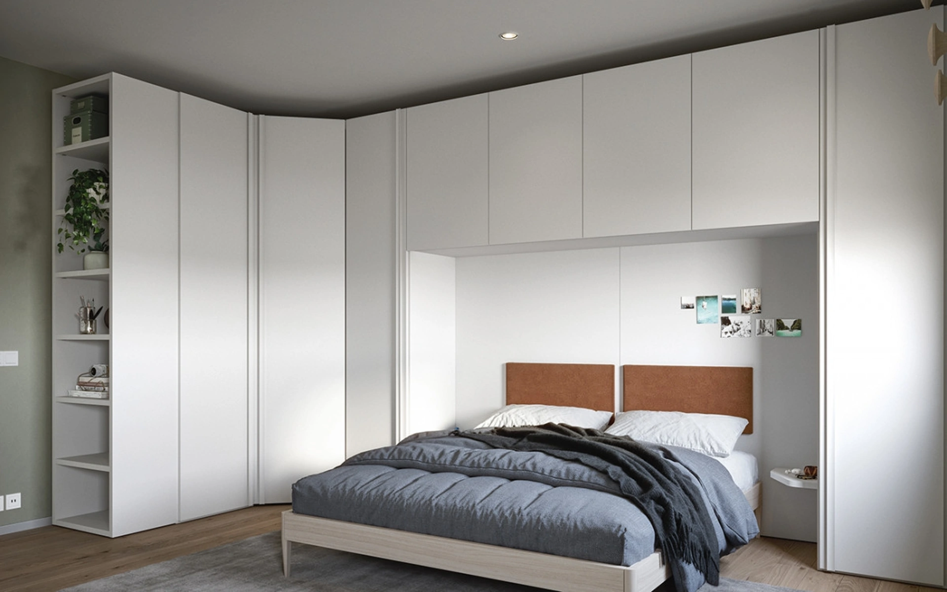 Contattaci per info e preventivi e potrai completare la camera da letto che hai sempre voluto grazie ad una ricca offerta di contenitori moderni come questo armadio in melaminico nell'immagine. La camera da letto è dedicata al riposo, deve dunque risultare arredata al meglio e completa di mobili e complementi in grado di ricreare un'ambientazione sempre rilassante. Per completare al meglio il progetto d'arredo, scegli le nostre proposte di Arredamento Casa delle migliori marche, letti, armadi e comodini diversi per buon gusto, grandezza e finitura. Armadio angolare a ponte 09C di Cinquanta3: compila il form, contattaci e dai vita alla stanza del relax come l'avevi immaginata.