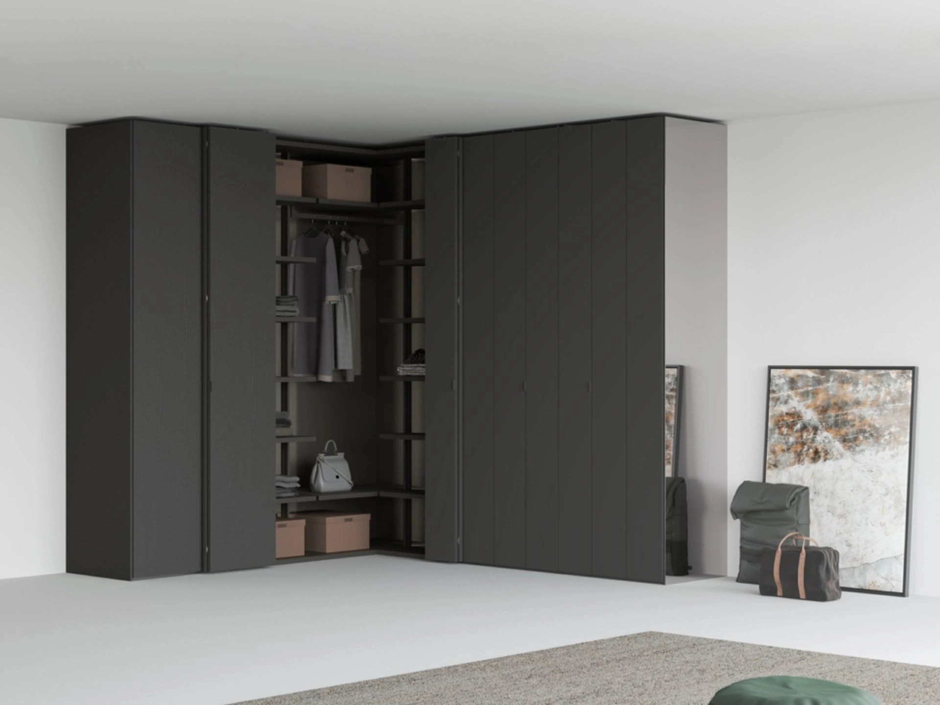 Per completare il progetto d'arredo in una zona notte bella e funzionale, abbiamo scelto per te le più originali e accattivanti soluzioni Caccaro, diverse per buon gusto, grandezza, finitura e accessori. Armadio Freedhome ad angolo di Caccaro: compila il form per informazioni e preventivi e progetta la tua casa come l'avevi immaginata. Contattaci e ottieni informazioni su una ricca gamma di Arredamento Casa per allestire la camera da letto usufruendo di contenitori in laccato opaco di grande design. Questa soluzione, tra i vari modelli ad angolo con ante a soffietto di Caccaro, è garanzia di solidità, eleganza e raffinatezza duraturi negli anni.
