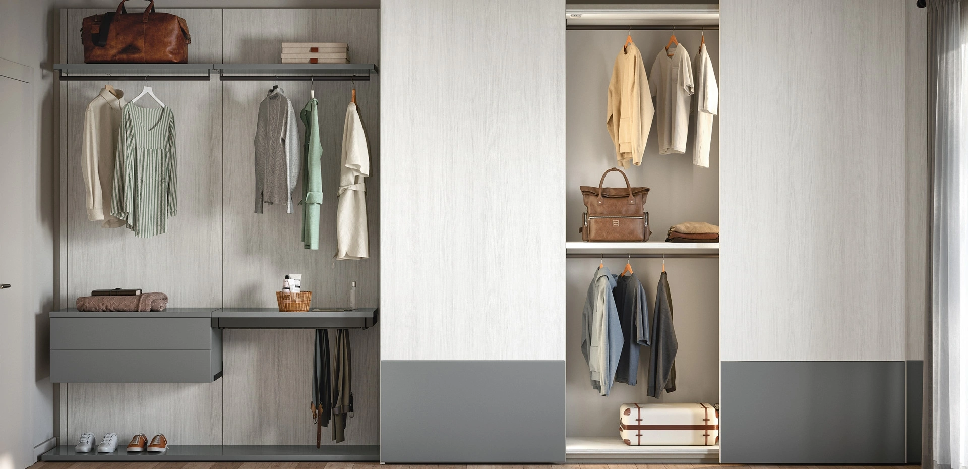 Questo guardaroba è ideale per essere collocato in un interno arredato con mobili ed elementi accessori moderni, coniugando alla perfezione praticità e design. In negozio ti aspettano le più accattivanti proposte di Arredamento Casa, comò e comodini sul mercato, differenti per buon gusto, dimensione e tonalità per completare alla perfezione una camera pratica e sofisticata. Cabina Armadio a cremagliera 08E di Cinquanta3: compila il form per info e preventivi e arreda la camera da letto come l'hai sempre sognata. La riconosciuta azienda Cinquanta3 annovera una eterogenea produzione di Armadi cabine armadio con ante scorrevoli, caratterizzati da disegno unico e funzionalità sempre utile.