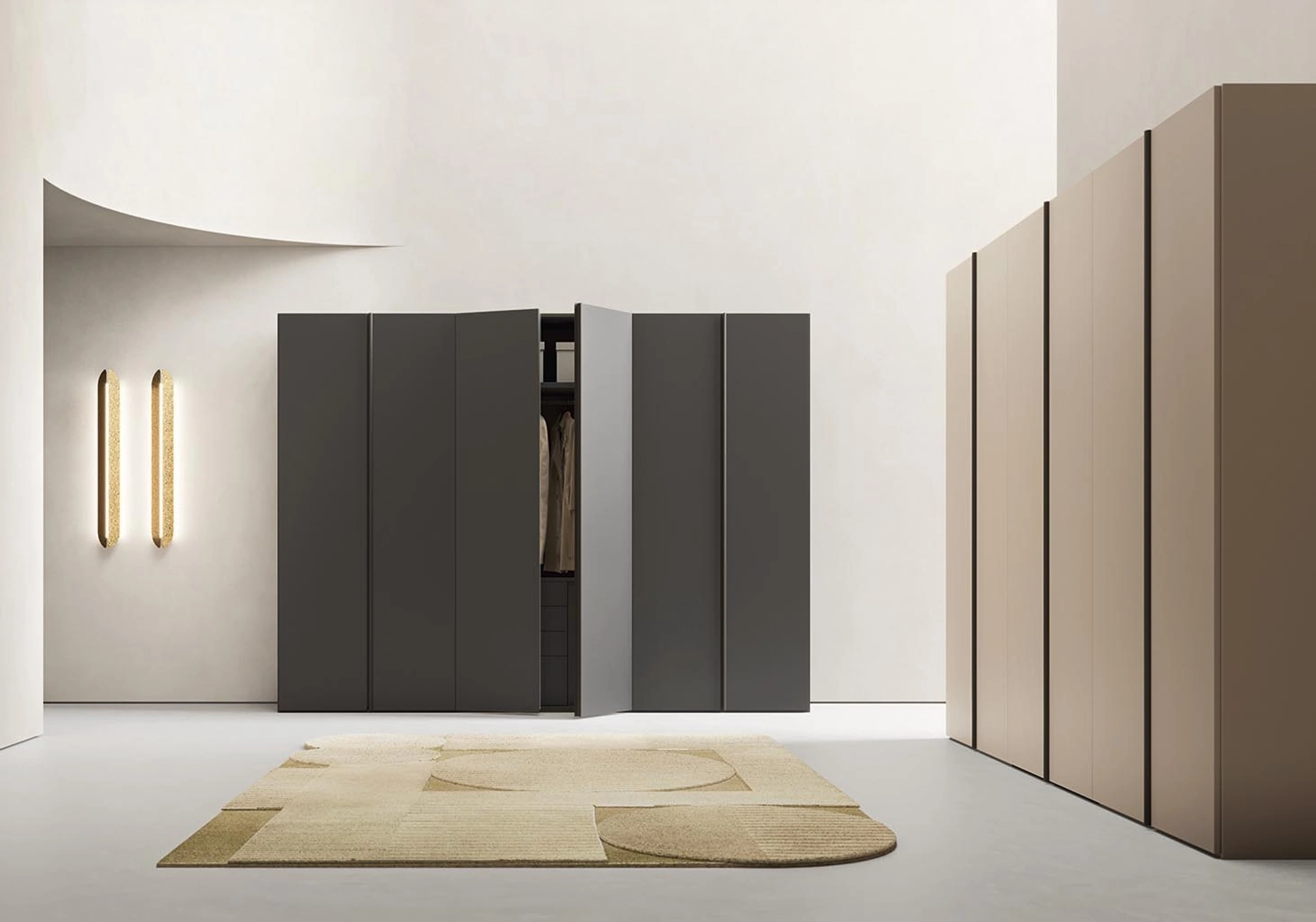 Contattaci per informazioni e preventivi e potrai completare la zona notte che hai sempre voluto grazie ad una diversificata offerta di mobili contenitori moderni come quest'armadiatura in laccato opaco nell'immagine. La zona notte è dedicata al relax, deve dunque risultare ben arredata e completa di mobili e oggetti accessori capaci di creare un'ambientazione sempre rasserenante. Per completare alla perfezione il concept d'arredo, opta per le nostre proposte di Arredamento Casa dei migliori brand, letti, armadi e comò diversificati per eleganza, dimensione e finitura. Gli Armadi e le cabine armadio con ante battenti devono progettare la camera garantendoti una perfetta organizzazione degli spazi e un'esclusiva ricerca stilistica.