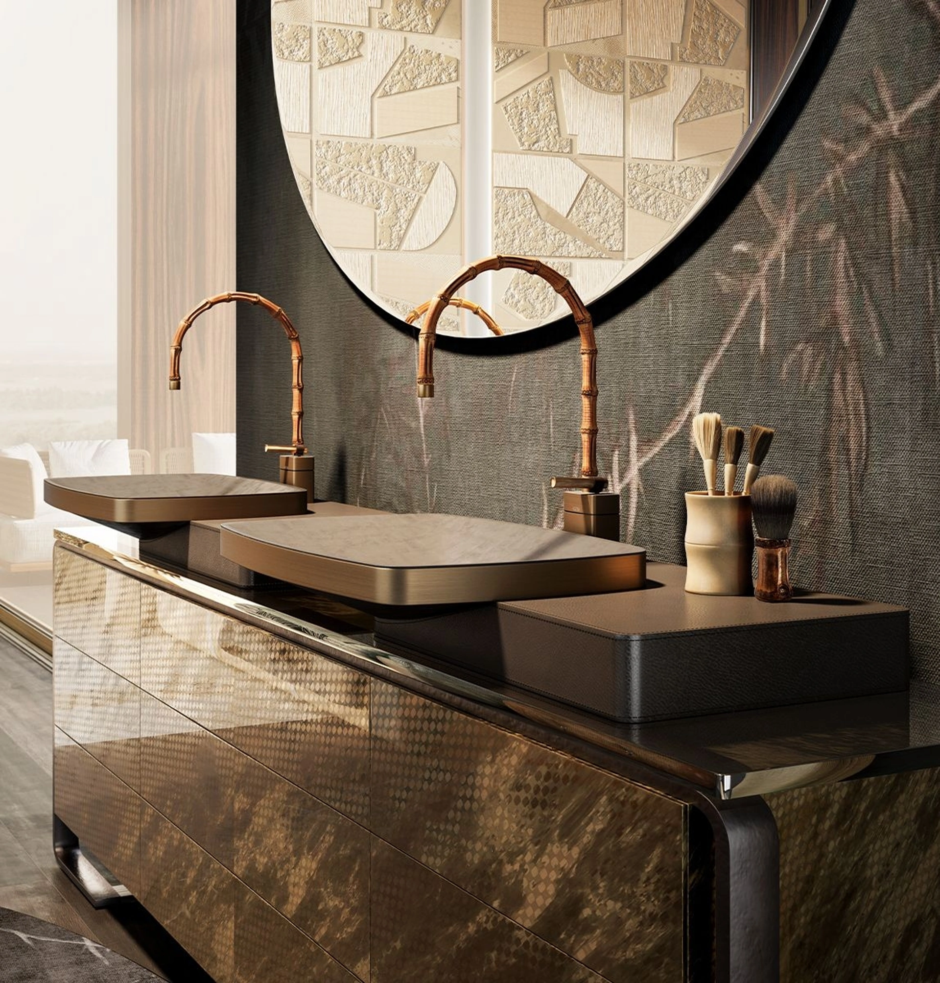 Con i modelli che proponiamo ti garantirai mobili fatti a regola d'arte e alla moda anche per il bagno, che va progettato con attenzione, con funzionalità e stile. Il modello Rubinetteria in bamboo Jacqueline di Gessi in legno fa parte della vasta gamma di mobili per la stanza da bagno della firma, sempre di alto valore estetico. Gessi produce proposte per l’Arredo Bagno design con rubinetteria che abbinano design unico e funzionalità, come questo interno richiede. Bello e funzionale in ogni stanza da bagno, un modello in legno design come quello nell'immagine risolverà le tue problematiche abitative di ogni tipo. Finiture innovative e una ricca palette cromatica garantiscono una progettualità fin nel dettaglio e materiali di prima scelta che resistano a disparate sostanze o composti.