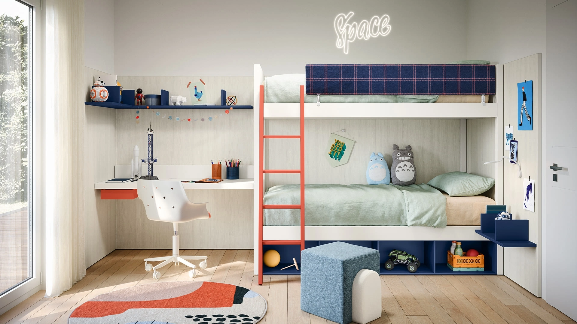 Con una composizione arredativa Nidi, potrai completare con funzionalità e design il luogo in cui i tuoi bambini passano gli anni più importanti della vita. Nidi soddisfa il gusto dei piccoli e i desideri dei genitori con le sue Camerette moderne con letti a castello, ideali per necessità di ogni tipo. Vieni nel nostro punto vendita e potrai visionare in prima persona tutte le più originali composizioni d'arredo con letti a castello moderne di Nidi per i più giovani. Tonalità di tendenza e progetti articolati eccellenti connotano le più originali proposte del noto e conosciuto brand che presentiamo nel nostro punto vendita.