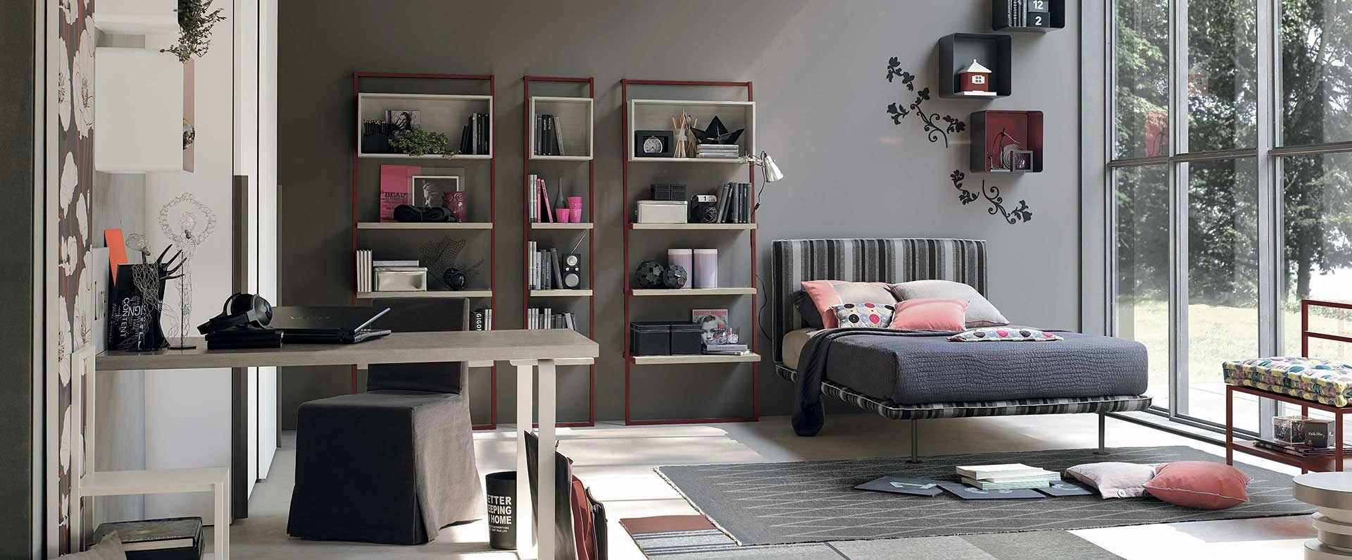Se cerchi spunti progettuali per organizzare ottimamente la stanza dei tuoi figli, ti proponiamo la Cameretta componibile Composizione 01B di Tomasella con finitura in laccato opaco. Porta estetica e tonalità vivaci nella stanza dedicata ai bambini con questa soluzione, una tra le Camerette componibili per ragazzi di Tomasella. Questa proposta in laccato opaco ultima ottimamente le doti pratiche e l'estetica della camaretta, in quanto è capace di coniugare funzionalità ed ergonomia. Tomasella mette a disposizione un ricco catalogo di elementi accessori da accostare su misura: troverai letto, armadio, tavolo da lavoro, sedie e librerie.