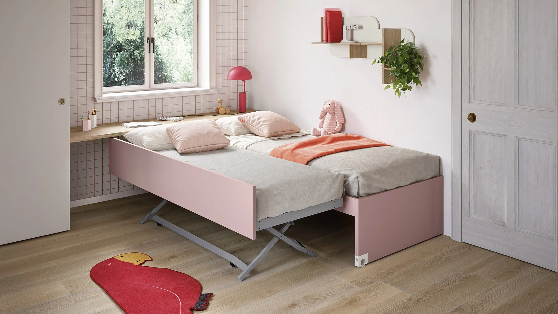 Con una composizione arredativa Nidi, potrai ultimare con praticità e design lo spazio nel quale i tuoi bambini passano gli anni importanti della vita. La Cameretta Salvaspazio con Letti Estraibili di Nidi in melaminico è un ambiente articolato da arredare con cura, coniugando vari accessori su misura. Nidi soddisfa lo stile dei bambini e le necessità dei genitori con le sue Camerette moderne salvaspazio, ideali per necessità di ogni genere. Vieni nel nostro punto vendita e potrai toccare con mano tutte le più originali composizioni d'arredo salvaspazio moderne di Nidi per i più giovani.