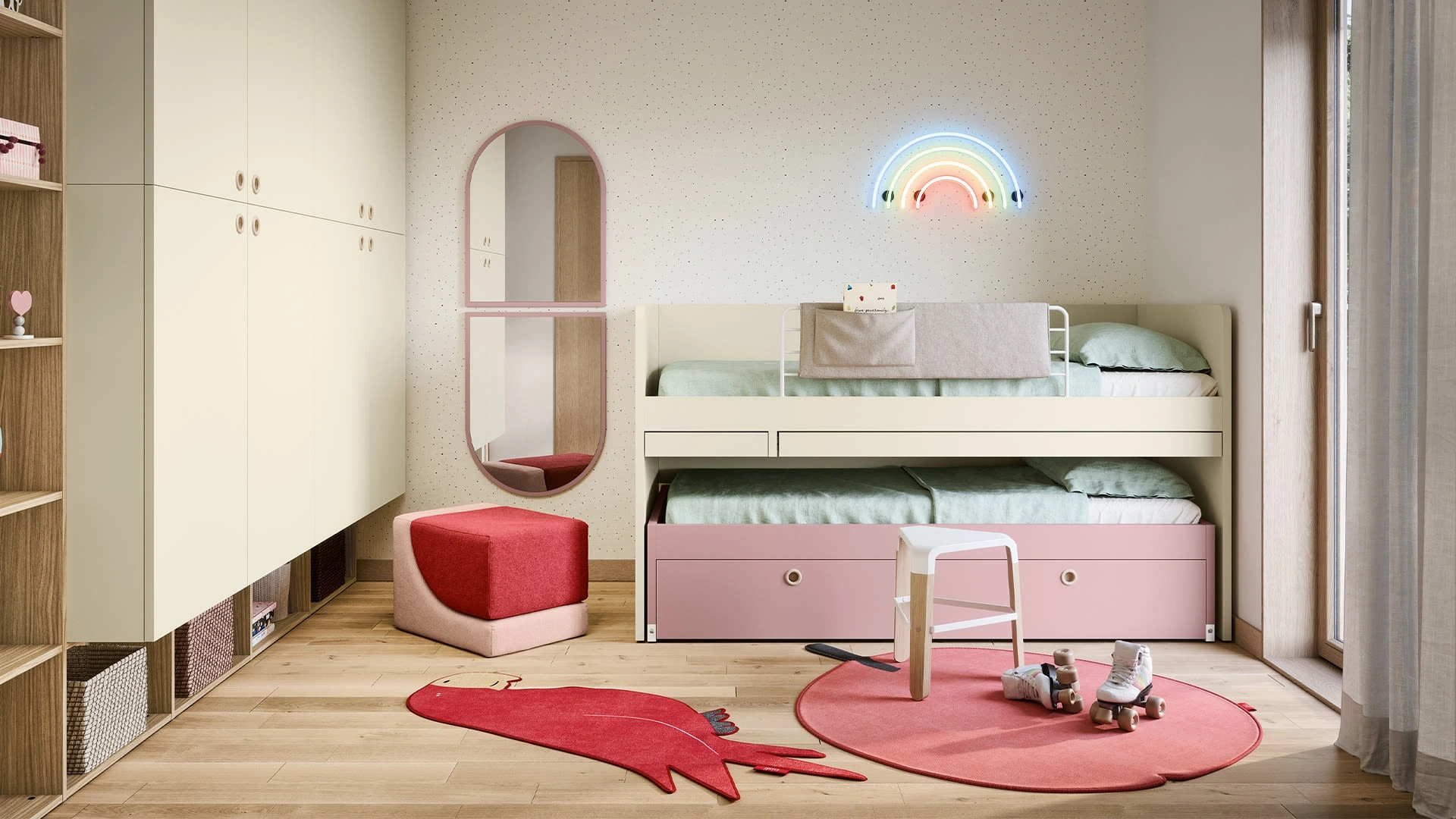 Con la Cameretta Salvaspazio con Letti Rialzati di Nidi renderai la stanza dei tuoi figli un locale davvero funzionale e sicuro, che li seguirà mentre diventano grandi. Farci visita vuol dire vedere dal vivo tutte le più esclusive soluzioni per bambine salvaspazio in melaminico che presentiamo nel nostro showroom. Per progettare alla perfezione le Camerette, Nidi propone progetti articolati e versatili: sono tante le attività che i tuoi figli portano a termine lì. Questa proposta con finitura in melaminico, tra quelle salvaspazio per bambine di Nidi, soddisfa le esigenze degli adulti e i gusti dei giovani.