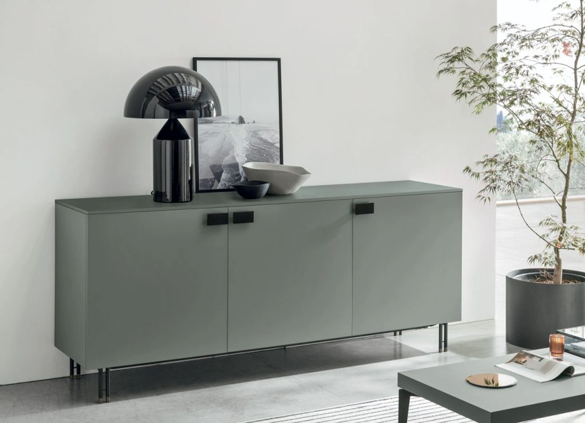 La Madia Prometeo di Tomasella in foto in laccato opaco risolve le più particolari esigenze di spazio e stile, arredando il living con praticità e un design unico. Se desideri un modello di mobile soggiorno salvaspazio, scopri in negozio una ricca gamma di Arredamento Casa dei migliori brand e contattaci per info e preventivi. Le Madie moderne, tra cui il modello mostrato in foto, valorizzano il soggiorno o la zona pranzo grazie a linee ben studiate e grandi doti di contenitività. Anche in un soggiorno abbastanza piccolo, questi mobili soggiorno sono in grado di risolvere differenti esigenze abitative garantendo differenti possibilità di personalizzazione su misura.