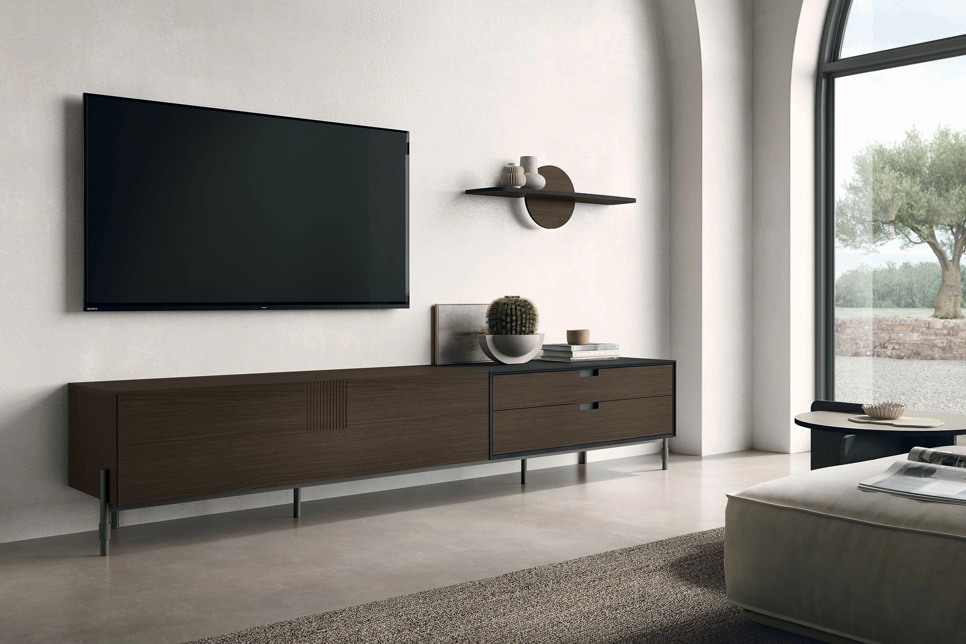 Il Mobile Porta Tv TIME UNIT TI 130 di Tomasella è adatto a essere collocato in diversi tipi di soggiorno, grazie a uno stile raffinato e doti di grande tecnologia. Tomasella presenta varie tipologie di Mobili Porta Tv moderni, che fanno delle pareti dell'ambiente giorno uno spazio sempre ordinato e razionale oltre che di grande valore estetico. I Mobili Porta Tv sono mobili plurifunzionali e solamente con l'ausilio di un buon modello di mobile è possibile predisporre al meglio il soggiorno. Questa proposta con mobile porta tv in melaminico, tra le composizioni più belle di Tomasella, si adatta a arredare un soggiorno di alto valore estetico.