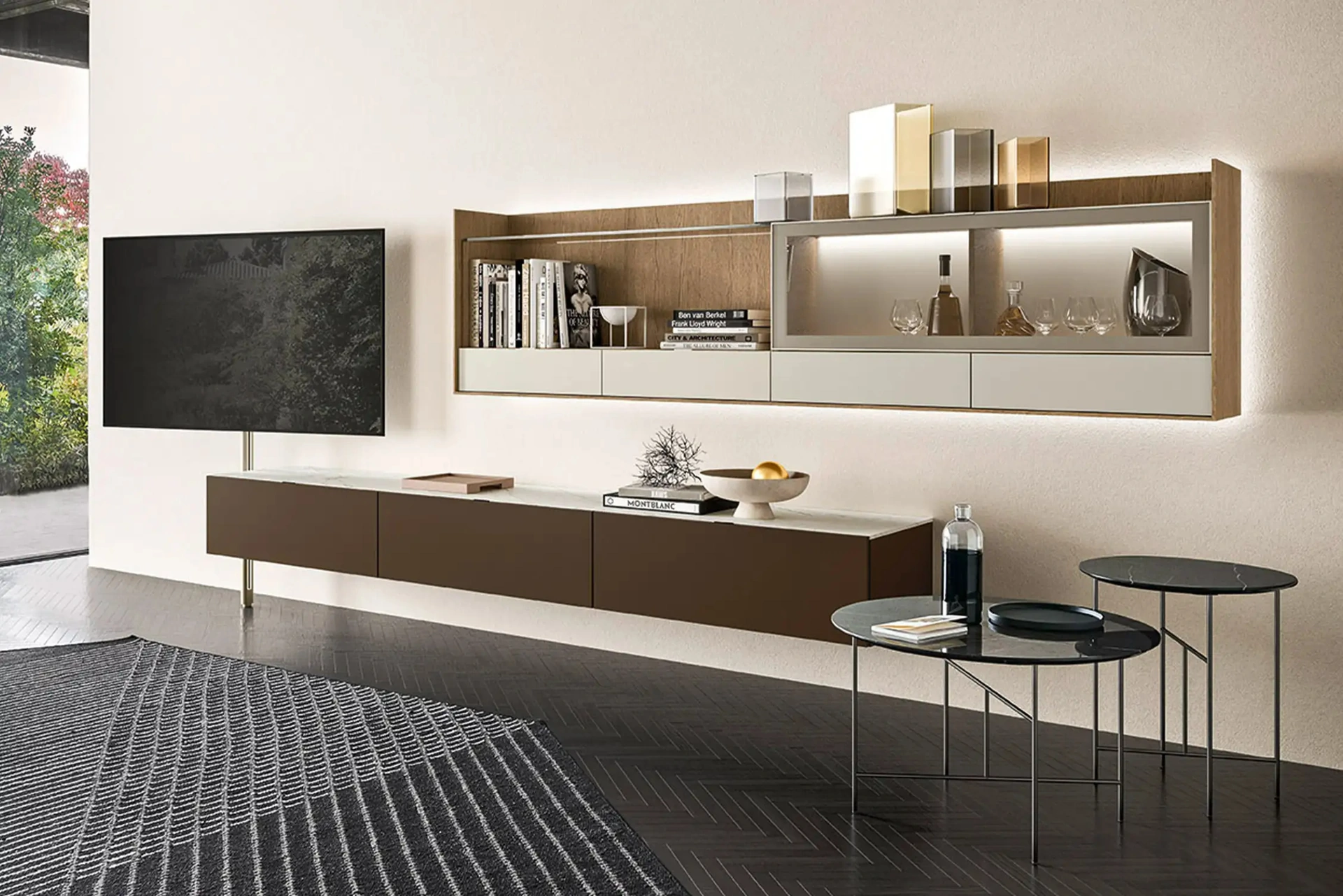 I Mobili Porta Tv, se scelti con cura, servono per ultimare il tuo soggiorno fungendo da multifunzionale piano d’appoggio per oggettistica varia, per la TV e quant'altro. Nel soggiorno servono arredi che ci accompagnino nella quotidianità in casa, semplificando i gesti che facciamo nel quotidiano e creando particolari atmosfere. Utili e di charme, i nostri Mobili Porta Tv Sangiacomo in laccato opaco per ambienti moderni sapranno organizzare al meglio gli spazi valorizzandoli. Che tu voglia riporci la televisione, libri o oggettistica varia, un mobile come quello visibile in foto saprà vestire gli spazi indoor arricchendone l'estetica.