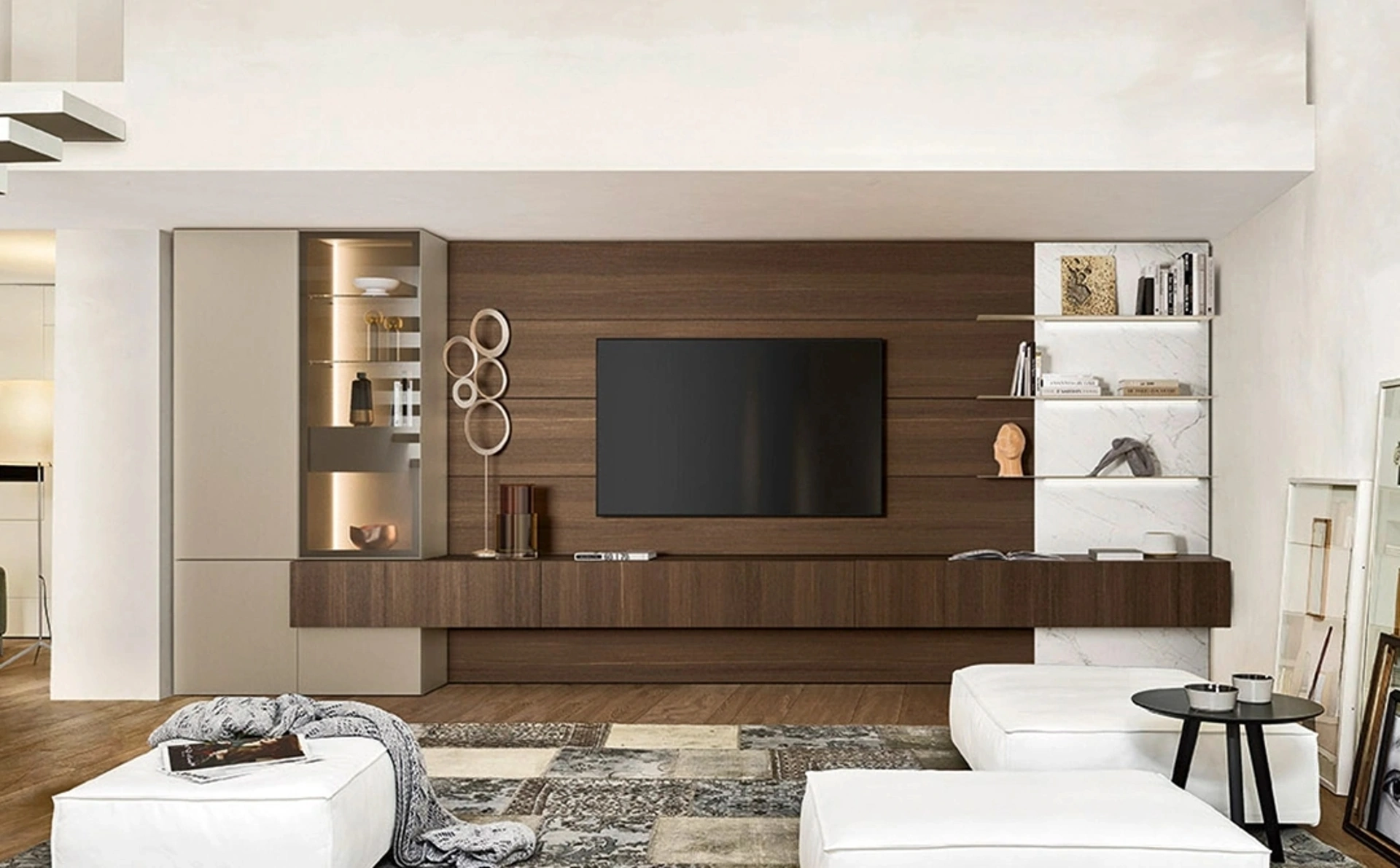 Un po’ librerie, un po’ mobili contenitori ed espositori: le Pareti Attrezzate sono ideali per arredare un luogo dinamico e operativo. Anche in un soggiorno di dimensioni contenute, questo tipo di arredo riesce a organizzare al meglio gli spazi ottimizzando ogni angolo e assicurando l'alta componibilità tipica delle soluzioni moderne. Se cerchi mobili salvaspazio e realizzabili su misura per te, contattaci e ottieni informazioni sull'Arredamento Casa delle migliori marche. La Parete Attrezzata Lampo 004 di Sangiacomo nella fotografia, con finitura in legno, risolve le più particolari esigenze abitative di spazio e stile senza rinunciare alla ricerca estetica.