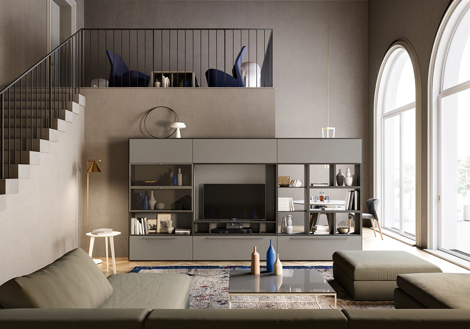 La Parete Attrezzata My Space 18-02 di Alf Da Frè nell'immagine, con finitura in laccato opaco, risolve le più personali problematiche abitative di spazio e stile senza rinunciare alla ricerca stilistica. Anche in un soggiorno di dimensioni contenute, questo tipo di arredo riesce a ottimizzare gli spazi sfruttando bene ogni angolo e garantendo grandi doti di componibilità tipica delle soluzioni moderne. Se cerchi mobili salvaspazio e realizzabili su misura, contattaci e ottieni informazioni sull'Arredamento Casa dei migliori produttori. Un po’ librerie, un po’ contenitori ed espositori: le Pareti Attrezzate sono ideali per arredare uno spazio pratico e dinamico.