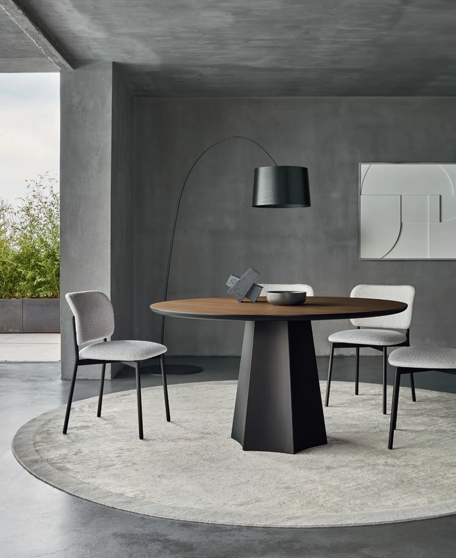 Ideali per dare vita a degli abbinamenti unici con sedie e complementi design, i Tavoli fissi del brand sono soluzioni tra le più esclusive in commercio, ideali per il living e la zona cucina. Un modello come quello in foto, in abbinamento alle giuste sedie, saprà arricchire il mood delle stanze di casa dedicate per eccellenza alla convivialità. Se desideri un tavolo da pranzo di grande design, contattaci e ricevi informazioni e preventivi sul modello mostrato in foto. Tavolo rotondo Poliedro di Sangiacomo: realizzato in materiali di prima scelta è connotato dalle linee decise del top e da un basamento elegante e sofisticato.