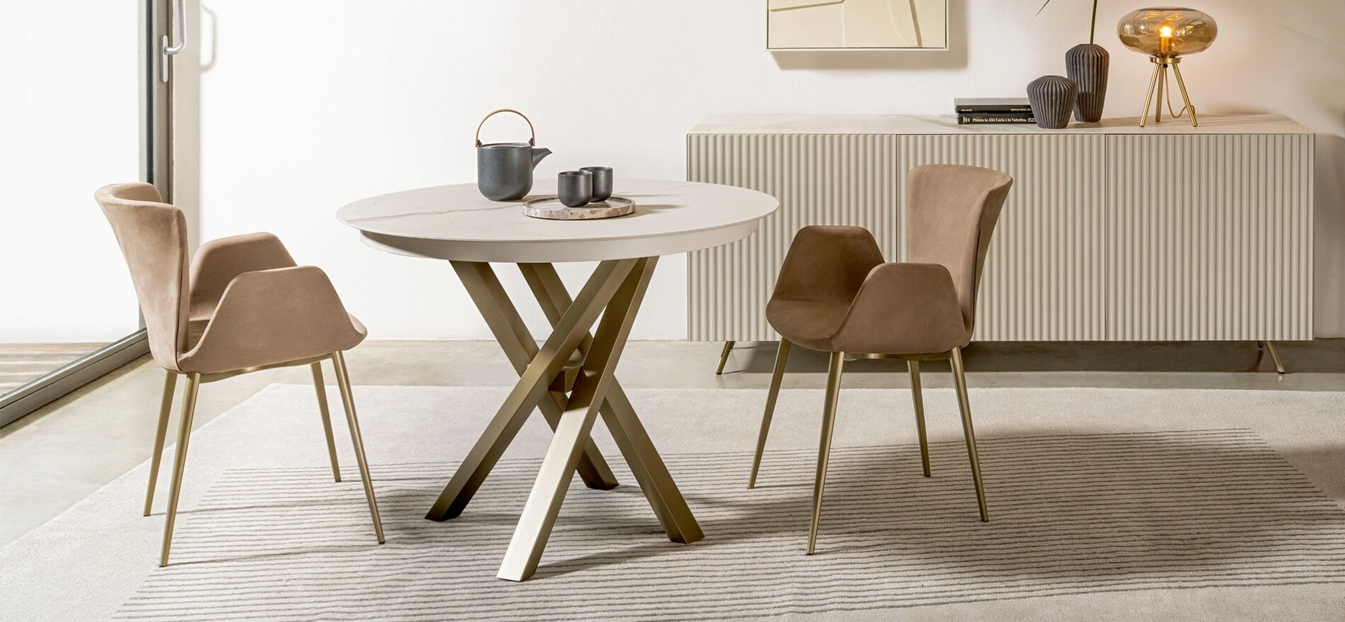 Ideali per dare vita a degli abbinamenti unici con sedie e complementi design, i Tavoli allungabili della firma sono soluzioni tra le più belle in commercio, ideali per il soggiorno e la zona cucina. Un modello come quello nella fotografia, in abbinamento alle giuste sedie, saprà valorizzare lo stile delle stanze domestiche dedicate in assoluto alla socializzazione. Se vuoi un tavolo da cucina di alto contenuto estetico, contattaci e ricevi info e preventivi sul modello visibile in foto. Tavolo allungabile Shangai Round di Riflessi: realizzato in materiali pregiati è contraddistinto dalle forme decise del top e da un basamento ricercato ed elegante.