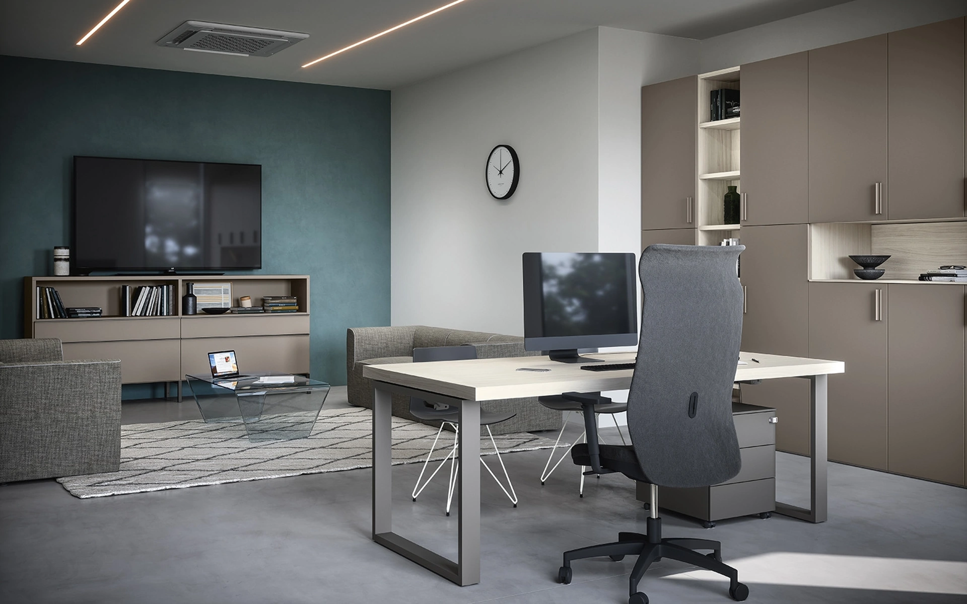 Oggigiorno l’Arredo Ufficio deve accontentare le esigenze di funzionalità e comfort per i lavoratori, quelle di accoglienza e serietà soprattutto per i clienti. Scrivania Direzionale 02A di Cinquanta3: su misura per ultimare gliambienti di lavoro assicurando il comfort di chi ci lavora, con un elevato contenuto estetico. Il noto e conosciuto brand lavora sempre in linea con le esigenze di ciascuno, infatti offre a catalogo ogni sorta di Arredo Ufficio in melaminico. Materiali durevoli, un elevato contenuto estetico e design unico connotano la ricca linea di arredi per gliambienti lavorativi del brand Cinquanta3.