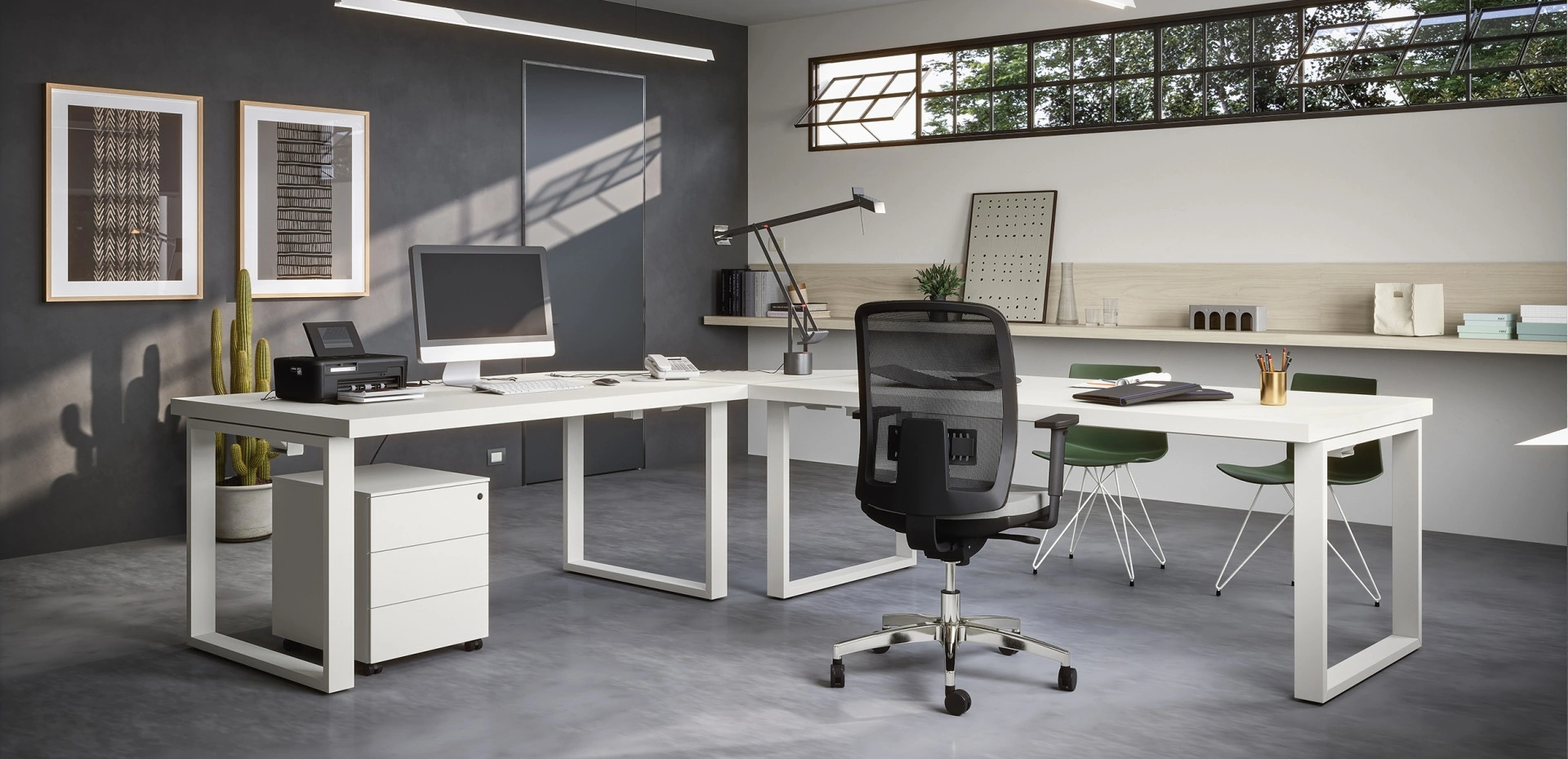 Nel nostro punto vendita presentiamo molteplici composizioni arredative con scrivanie operative Cinquanta3 in melaminico, sempre in materiali pregiati e resistenti negli anni. Al giorno d'oggi l’Arredo Ufficio deve agevolare le esigenze di praticità e comfort per chi svolge il lavoro, quelle di accoglienza e serietà prima di tutto per i clienti. Il noto e conosciuto marchio si muove sempre al passo con le esigenze individuali, infatti produce ogni sorta di Arredo Ufficio in melaminico. Scrivania Operativa con gambe fisse 03A di Cinquanta3: ideale per completare glispazi lavorativi assicurando la comodità di chi ci lavora, con una buona resa estetica.